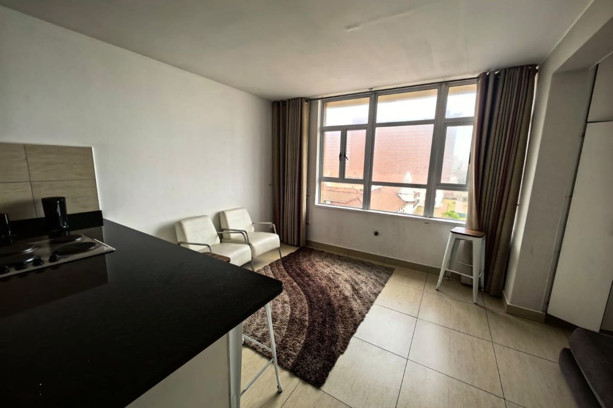 Cozy beachside one-bedroom flat with open-plan kitchen-lounge, modern bathroom, and spacious bedroom flooded with natural light. Tiled floors, bar-style kitchen divider, and B&B-friendly complex. Perfect for relaxing or hosting.