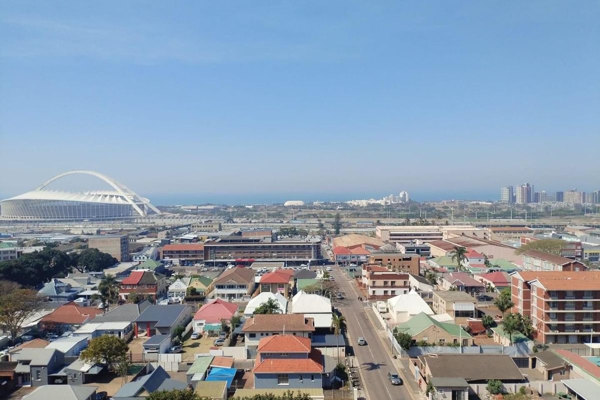Enjoy lock-up-and-go coastal living above Windermere Shopping Centre in Durban, five minutes from the beachfront, with panoramic sea, city and stadium views; fully furnished, two bedrooms, two bathrooms.
