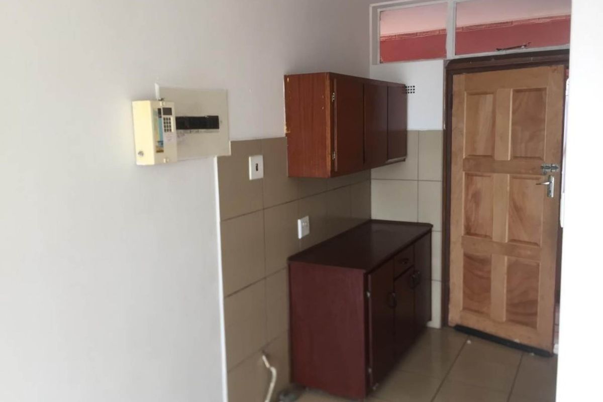 A bachelor flat to rent in Empangeni central,ideally suited for one person .This unit offers one bedroom , one bathroom and a kitchen.The complex has access via remote.