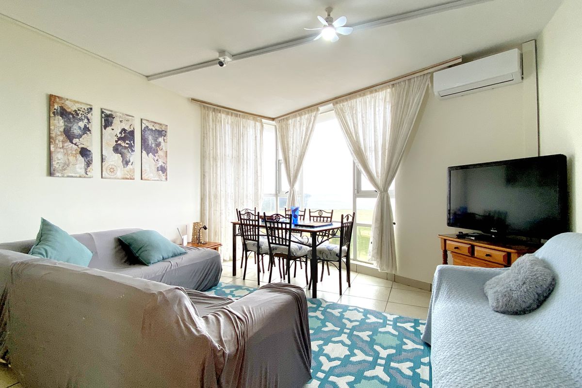 Live the holiday lifestyle with 180° ocean views and direct beach access in Hibberdene; open-plan sea-facing living, picture windows, shared pool and braai, two-bedroom with lock-up garage.