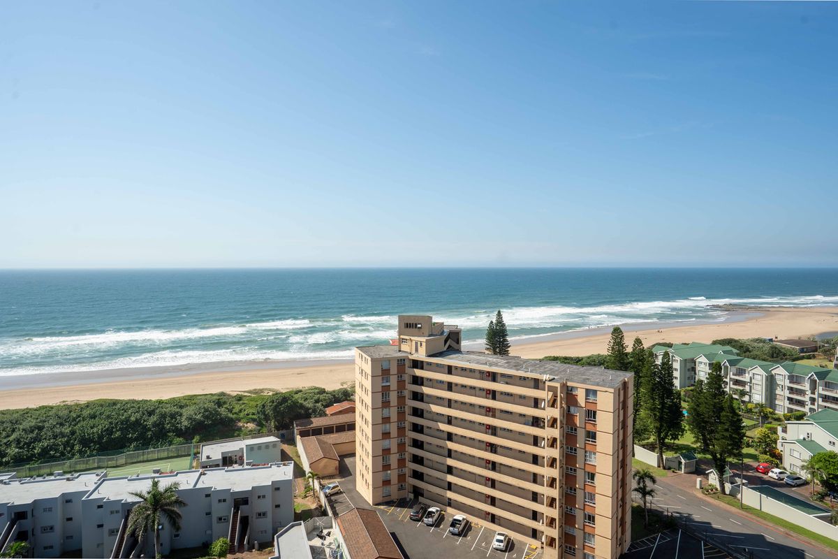 Relaxed coastal living with panoramic ocean views in the heart of Doonside, steps from beaches and shops; open-plan kitchen, communal braai area and two bedrooms plus secure garage.