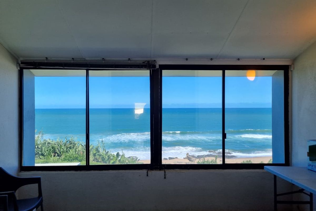 Wake up to 180-degree ocean vistas in a well-maintained seafront complex, with a modern open-plan kitchen, communal pool and braai — one bedroom, one bath and a parking bay.