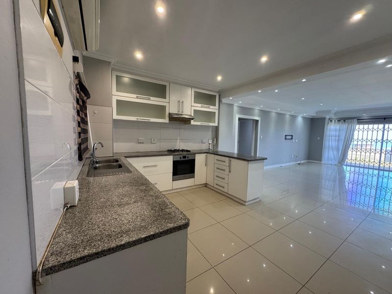Wake to ocean sunrises in La Mercy โ effortless coastal living 20 minutes from King Shaka, renovated open-plan apartment with 180ยฐ sea-view balcony, two beds, two baths, secure parking.