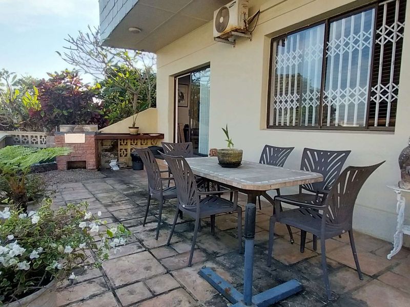 Seaside living in Beacon Rocks, Margate — bright ground-floor apartment with private patio and built-in gas braai, communal pool and sea views. Three bedrooms, two bathrooms, secure parking.