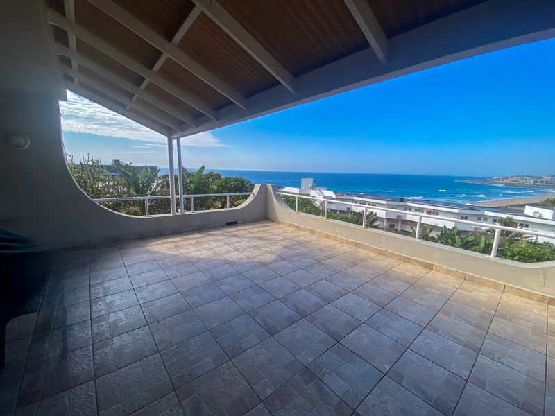 Wake up to ocean breezes on Lilliecrona Boulevard, steps from Blue Flag Lucien Beach — entertaining louvered balcony with gas braai and 180° sea views; three beds, two baths.