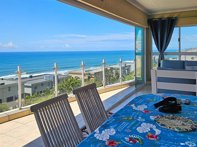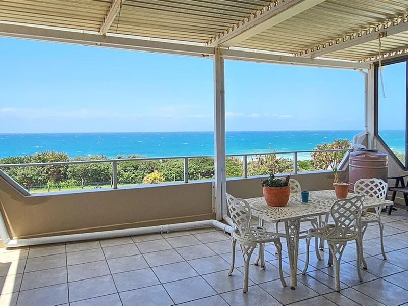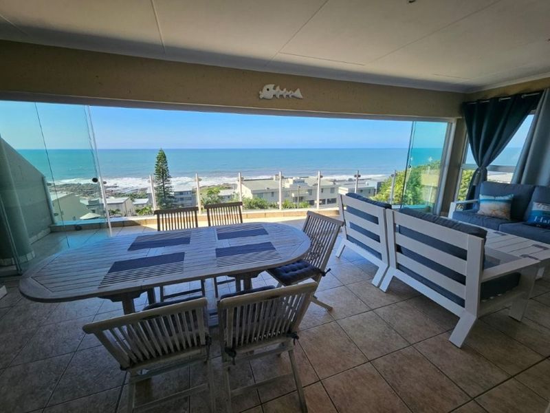 Wake up to sweeping ocean and beach views in this furnished apartment, ideal for entertaining on a covered patio with built-in gas braai and kitchen. 3 beds, 2 baths, garage.