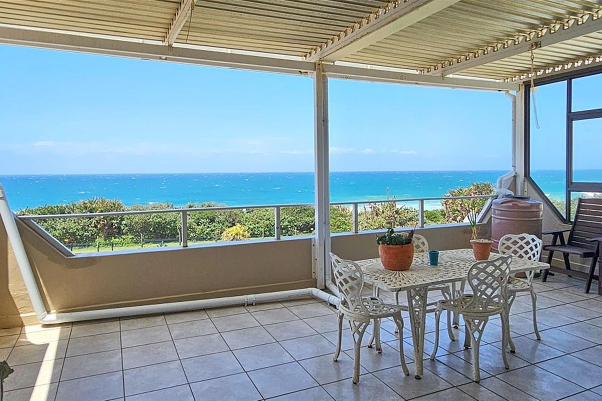 Wake up to ocean breezes on Lilliecrona Boulevard, steps from Blue Flag Lucien Beach — entertaining louvered balcony with gas braai and 180° sea views; three beds, two baths.