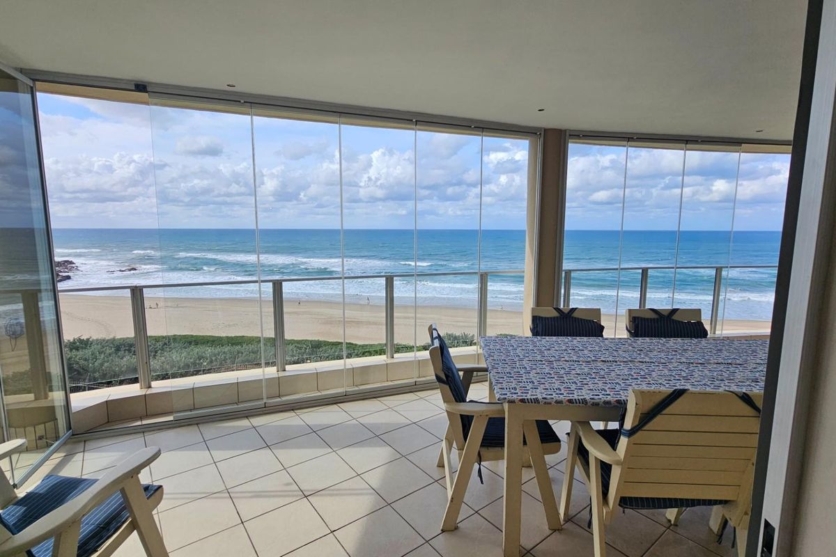 Beachfront living above Lucien Main Beach with sweeping Indian Ocean views, relaxed coastal entertaining on a large balcony with built-in gas braai — four bedrooms, double garage.