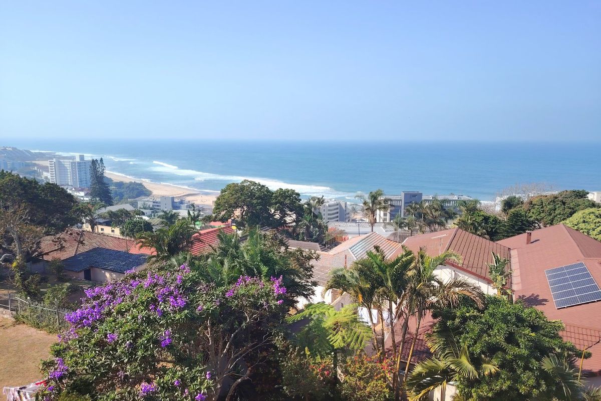Sunrise breakfasts and dolphin sightings from a covered balcony with braai and 180° sea views in Margate, minutes from Main Beach; corner unit with three beds, three baths, double garage.