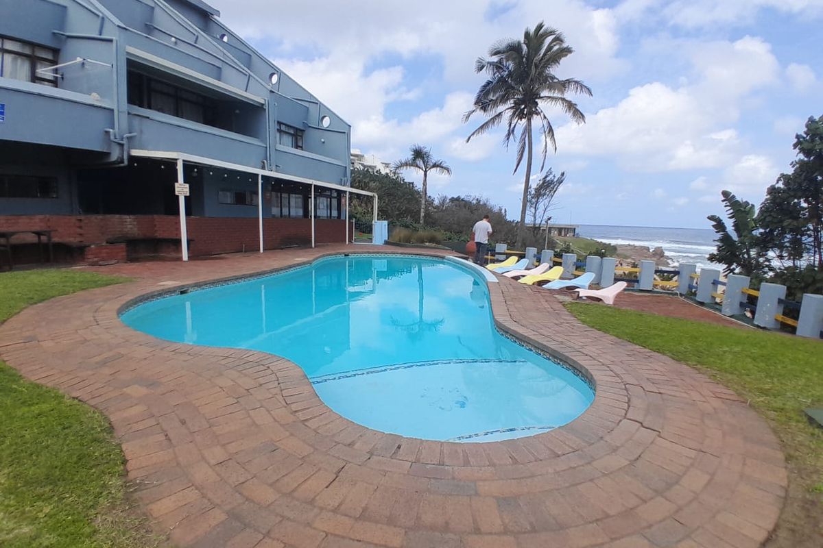 Relaxed beachside living on KwaZulu-Natal’s South Coast in a secure holiday resort with direct beach access, sea-view balcony, communal pool — two bedrooms, two bathrooms, covered parking.
