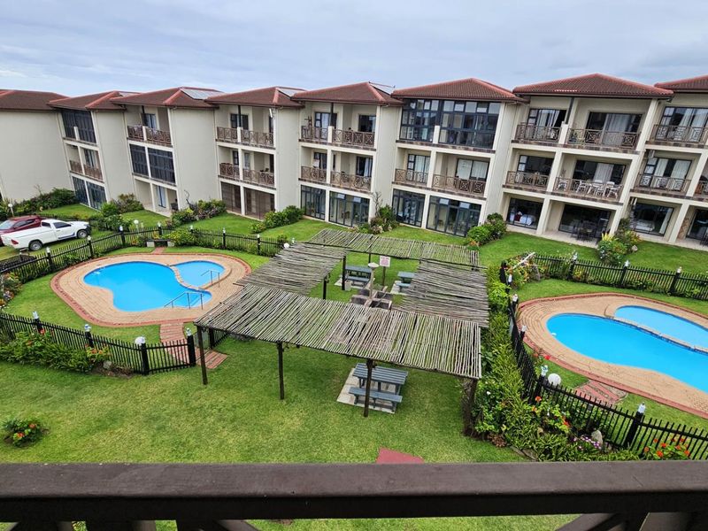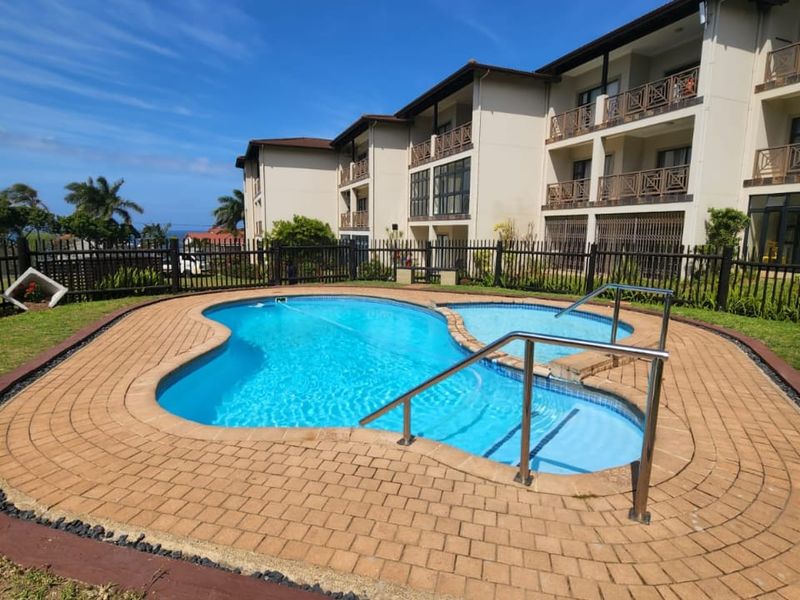 Relaxed seaside living in Uvongo with uninterrupted sea views from the open-plan lounge and granite kitchen, patio access and two communal pools. Includes two bedrooms and two bathrooms.