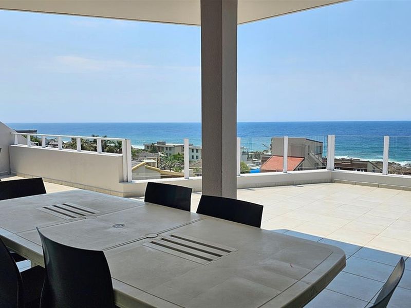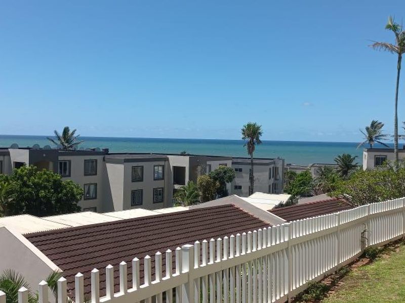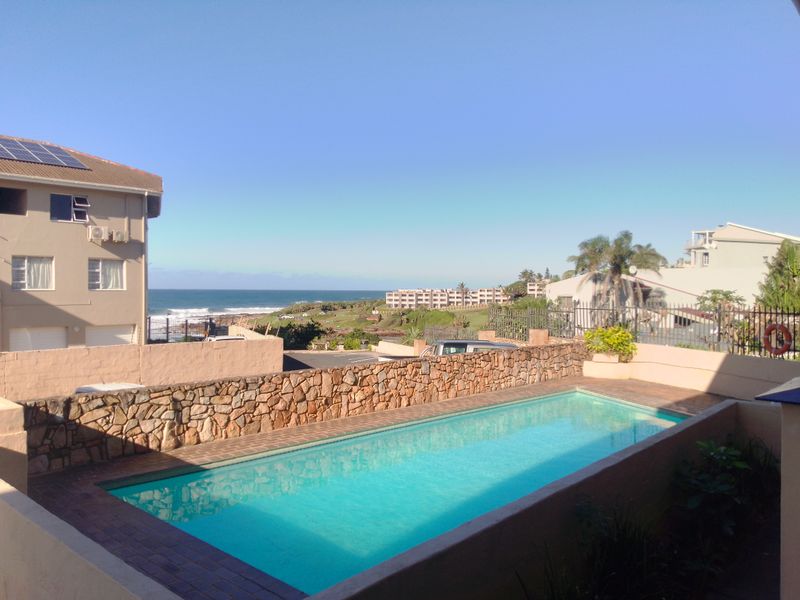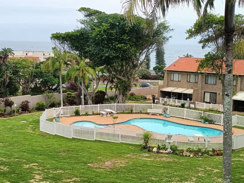 Seaside lifestyle in Uvongo, Margate—furnished sea-view apartment with balcony and private pool, gated estate with resort gardens and 3 bedrooms, 2 bathrooms, covered parking.