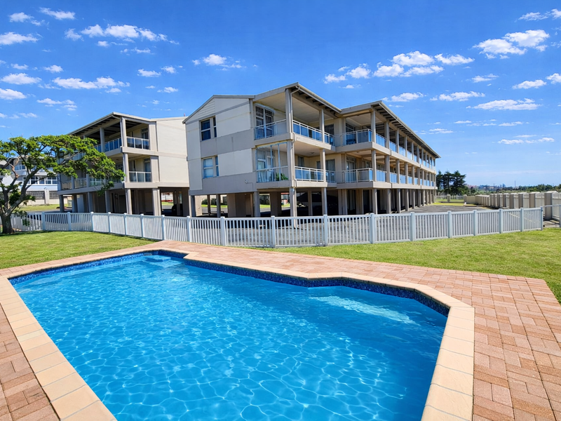Wake up to ocean breezes in Uvongo Beach's secure complex — first-floor apartment with private patio, owner-only pool and communal pools, plus three bedrooms, two bathrooms and single garage.