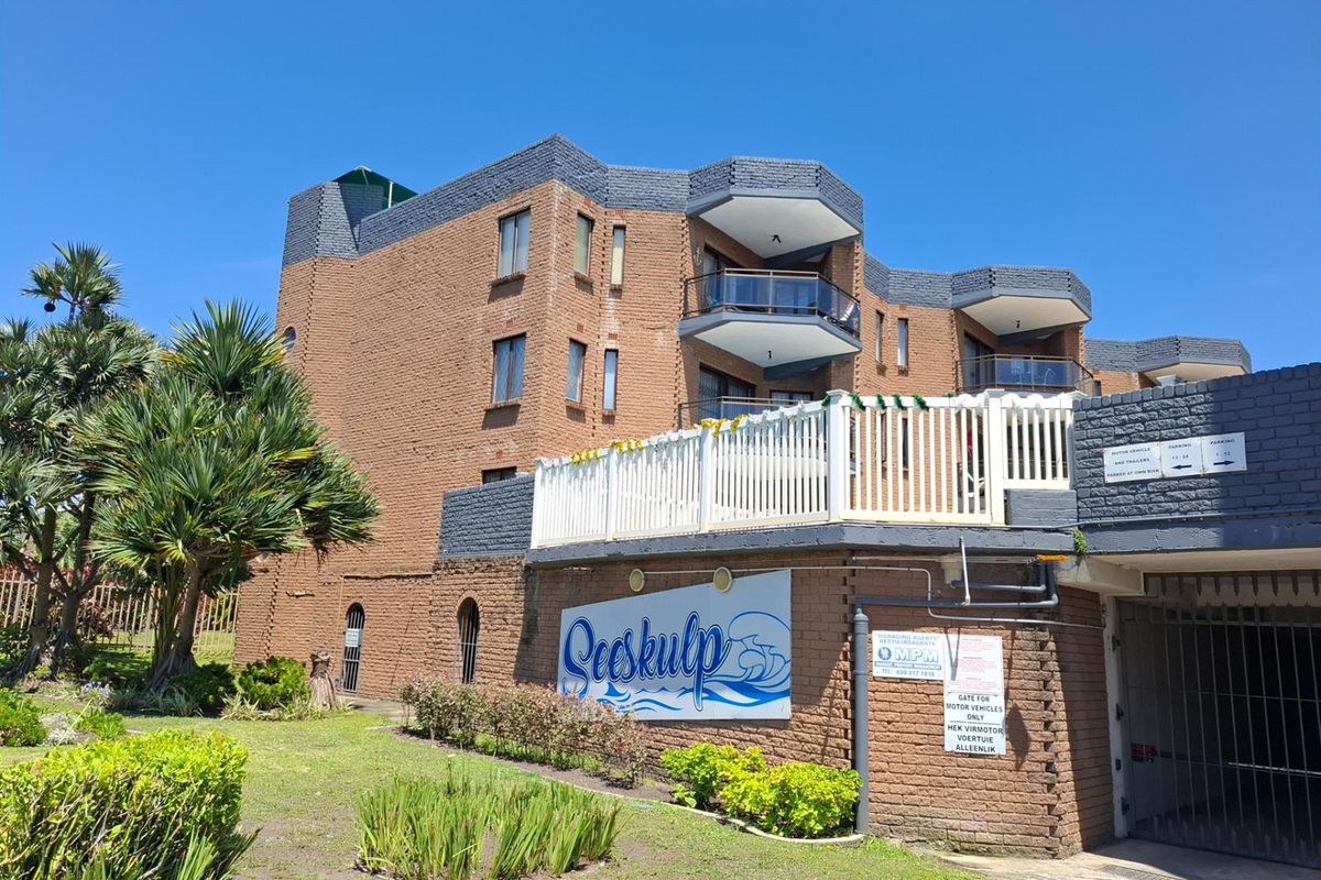 Embrace relaxed beachside living in Uvongo Beach, Margate — bright tiled apartment set on generous grounds with built-in cupboards and secure underground parking; two bedrooms, one bathroom.