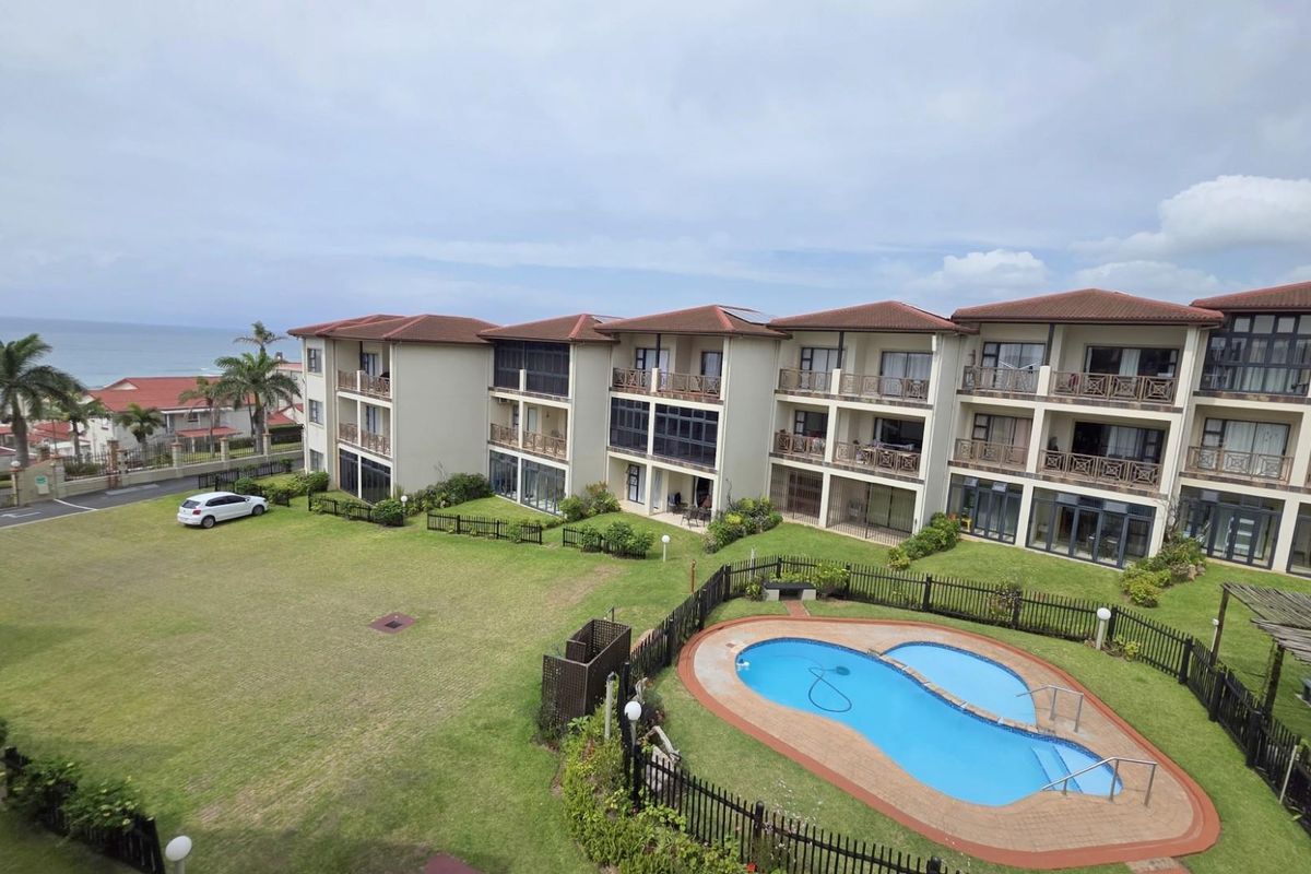 Enjoy relaxed coastal family living steps from Uvongo Beach, with open-plan dining and lounge, partial sea views and a balcony overlooking the communal pool and braai area. Two beds, two baths.