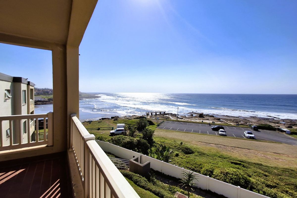 Wake up to ocean breezes in Uvongo Beach's secure complex — first-floor apartment with private patio, owner-only pool and communal pools, plus three bedrooms, two bathrooms and single garage.