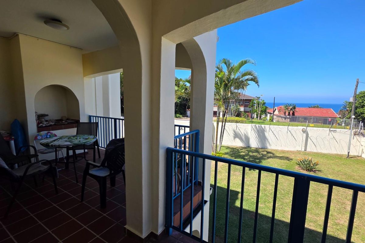 Coastal retreat in Uvongo Beach, walk to the sand and local shops. Refurbished open-plan unit with sea views, balcony access and three bedrooms, two bathrooms.