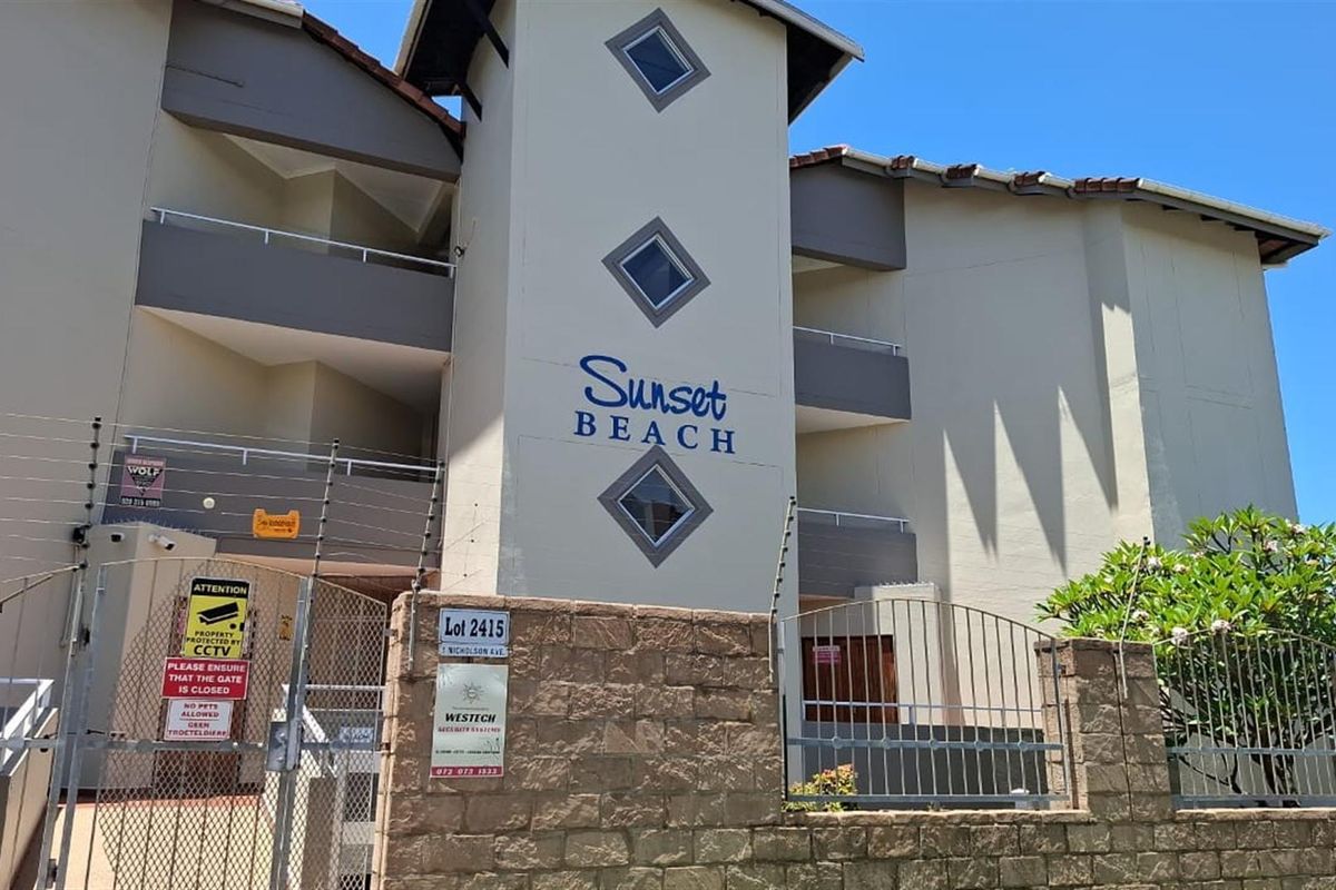 Beachside Uvongo lifestyle with easy access to restaurants and amenities; fully furnished apartment with sliding-door outdoor area, built-in cupboards and underground parking — two bedrooms, one bath.