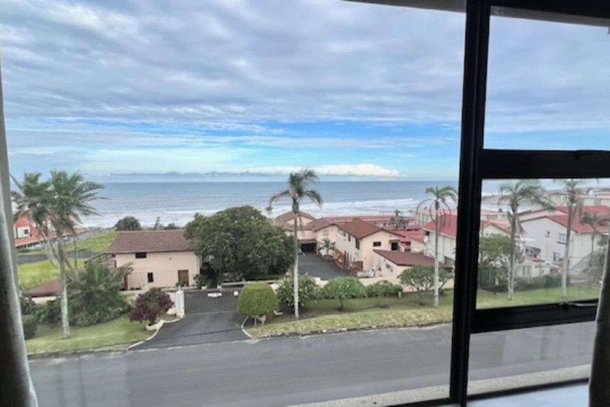Beachside living in Uvongo, steps from the beach and eateries — open-plan apartment with ocean-view covered balcony, granite kitchen, two pools; fully furnished, three bedrooms, two bathrooms.