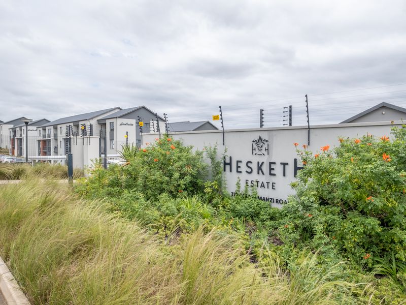 Secure estate living in Hesketh Country Estate, close to amenities, featuring a private balcony and clubhouse with pool and braai — includes two bedrooms, two bathrooms, and one parking bay.