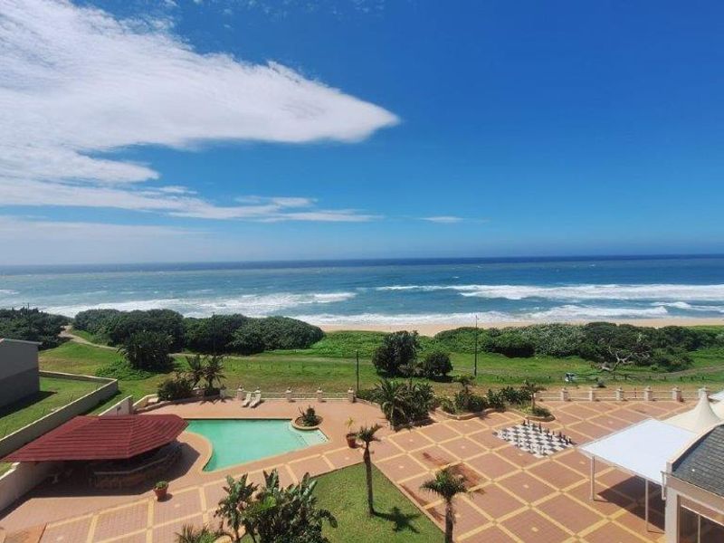Wake to panoramic sea views from a sunlit balcony in Port Shepstone Central — secure complex with communal pool and undercover parking, three beds and two baths.