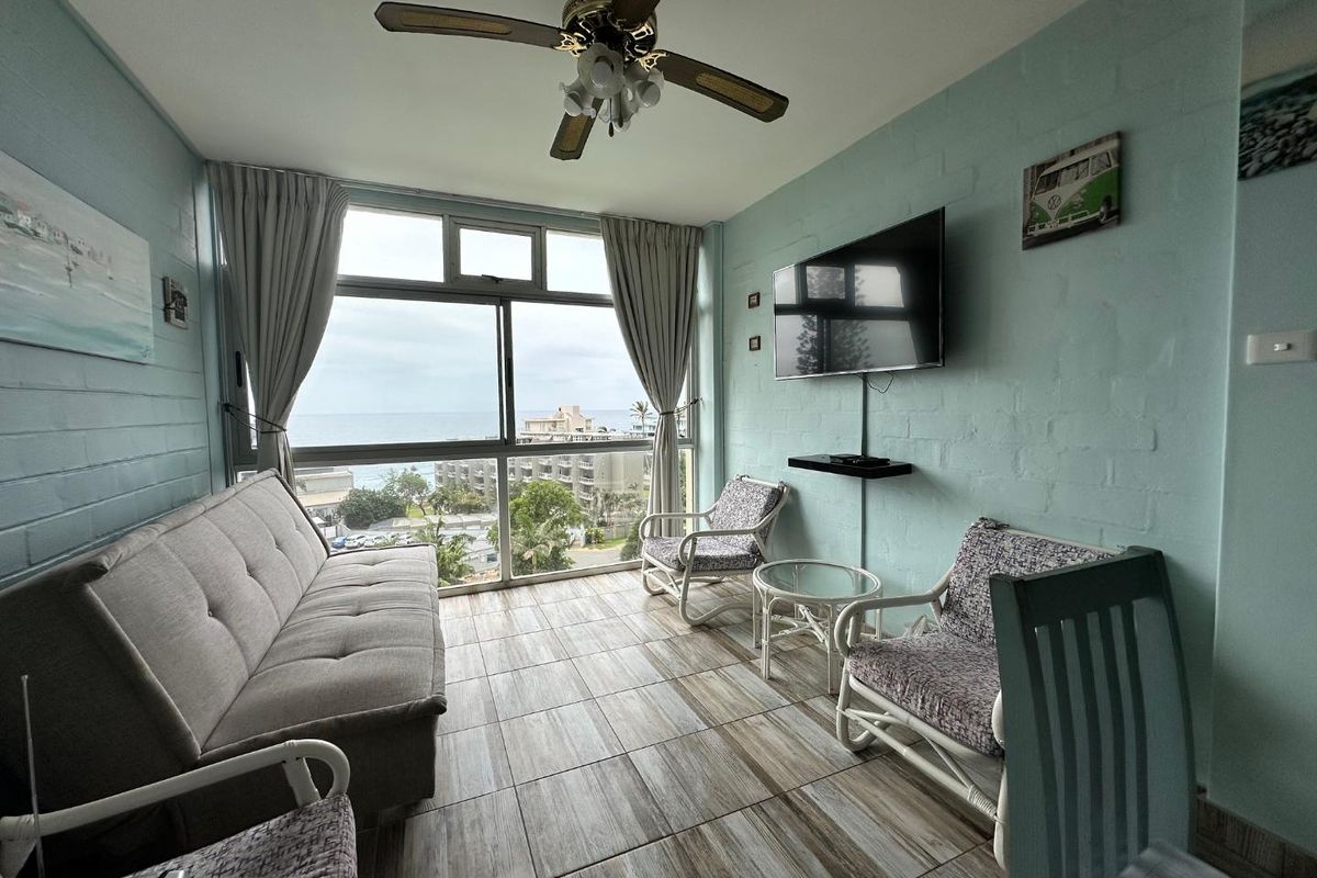 Coastal lock-up-and-go living with ocean breezes and easy access to shops and restaurants; fifth-floor apartment boasts panoramic sea views, modern open-plan kitchen, communal pool. Two bedrooms, one bath.