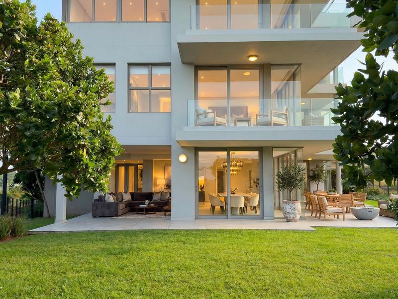 Effortless central living in uMhlanga — walk to schools, hospitals and the business district. Ground-floor apartment with private patio garden, modern open-plan kitchen, three beds, two baths, double covered parking.