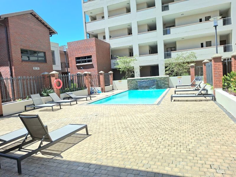 Effortless urban living near Gateway and Cornubia malls, quick M4/N2 access and airport. Enjoy three pools with braai areas — one bedroom, one bath, covered parking.
