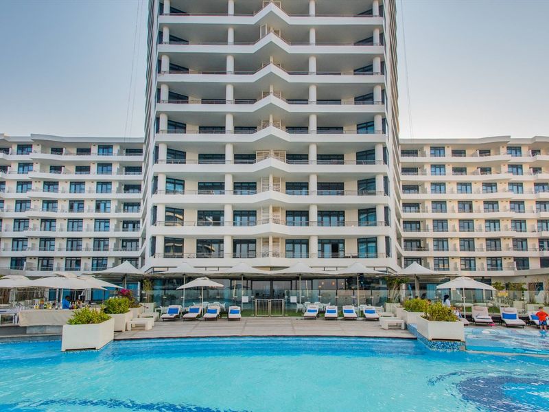 Resort-style living at Pearls of Umhlanga, steps from the promenade and Pearls Mall, ridge-facing furnished apartment with modern kitchen, private balcony, heated pools and biometric security.