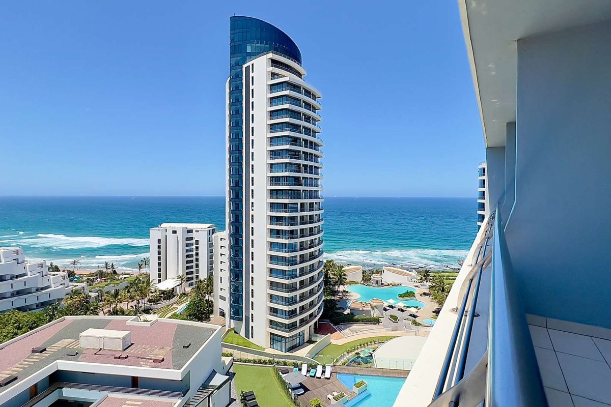 Beachfront living at The Pearls of Umhlanga®: sunlit studio with floor-to-ceiling windows and private balcony showcasing uninterrupted sea views, resort-style pool access, one bath and covered parking.