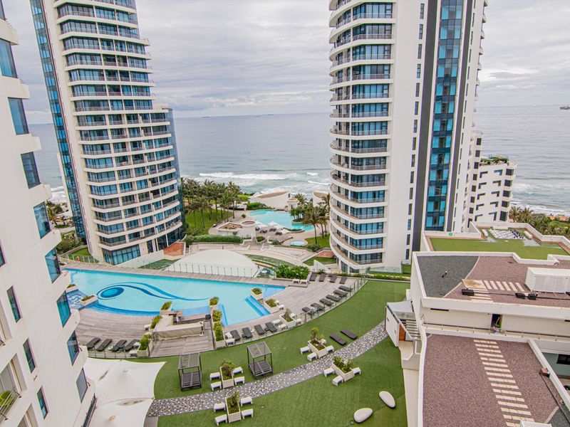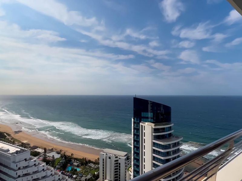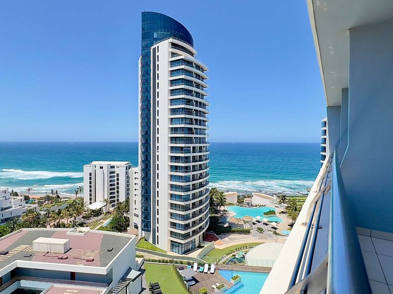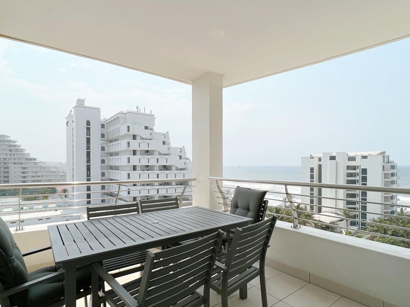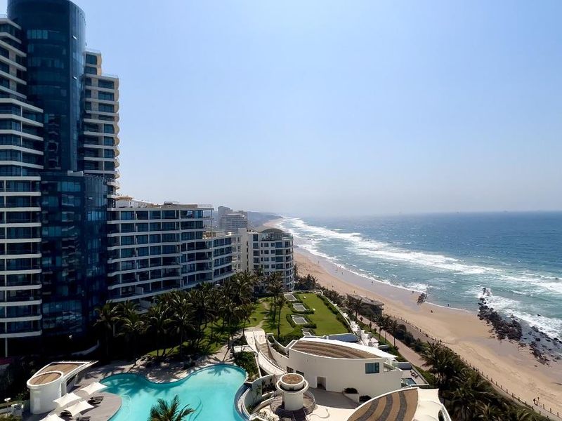 Wake to ocean views on Umhlanga Beach — living opens onto a huge balcony for sunset entertaining, heated pools, direct mall access, 3 en-suite bedrooms and 2 covered parking.