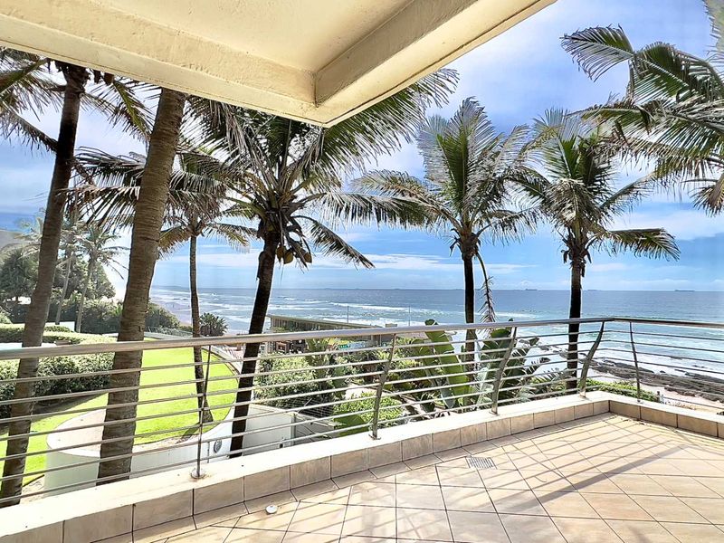 Beachfront lifestyle with sweeping Indian Ocean views, direct access to Umhlanga Beach and promenade, generous balcony linking master and living plus private master retreat. Three bedrooms, three ensuites, two parking.