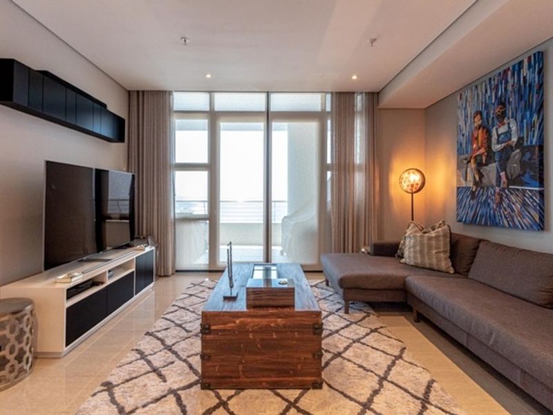 Seaside lifestyle in Pearls of Umhlanga with direct promenade access and mall amenities — massive balcony with uninterrupted sea views. Two bedrooms, 2.5 baths and two covered parking.