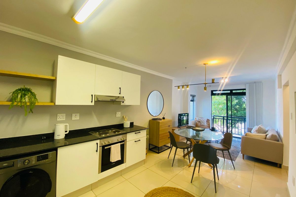 Relaxed Umhlanga Ridge lifestyle with open-plan living and dining, communal pool and secure covered parking — comfortable two-bedroom, one-bath apartment.
