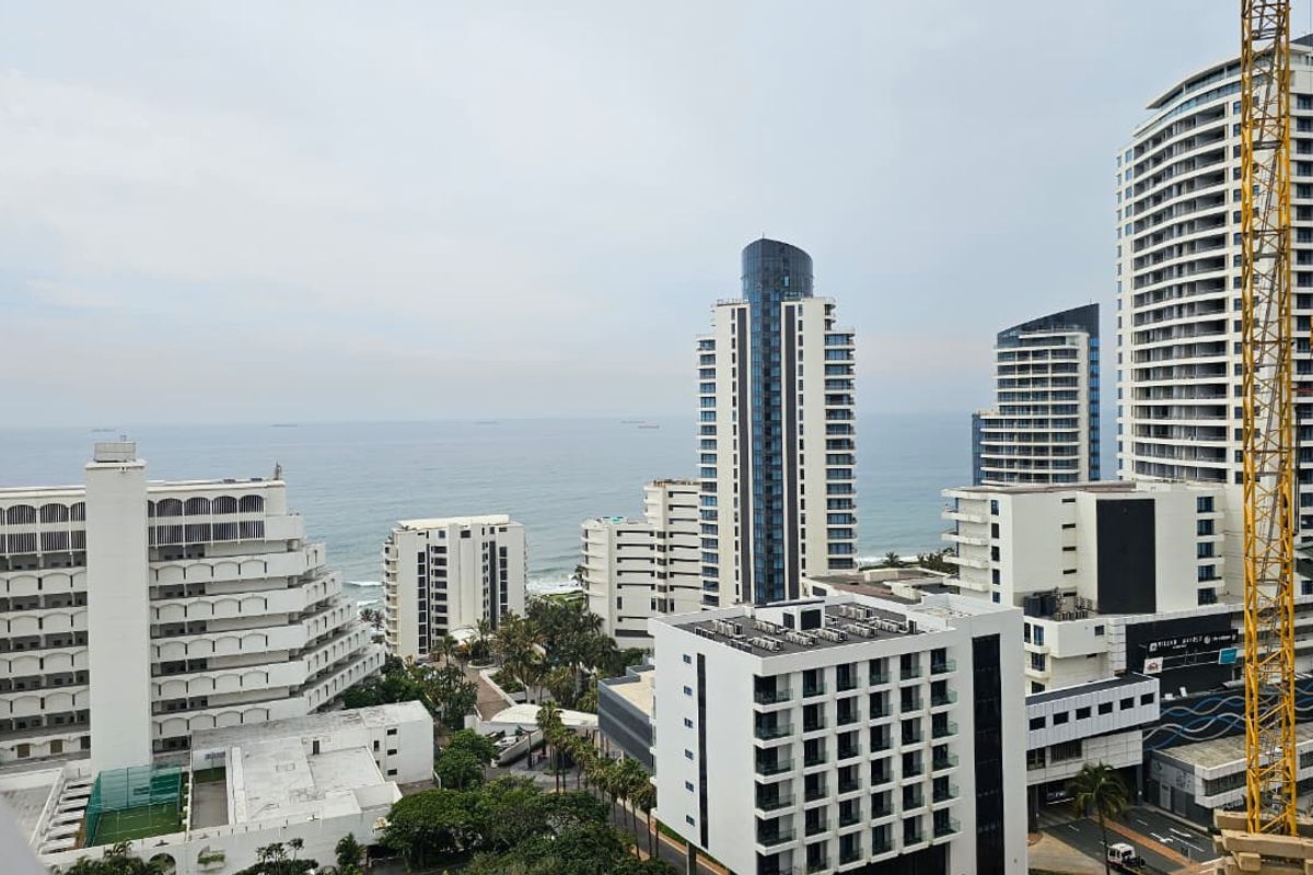 Effortless coastal living in Umhlanga, steps from Lagoon Drive's beach, mall and dining; private balcony with sea views, one-bedroom one-bath with secure parking.