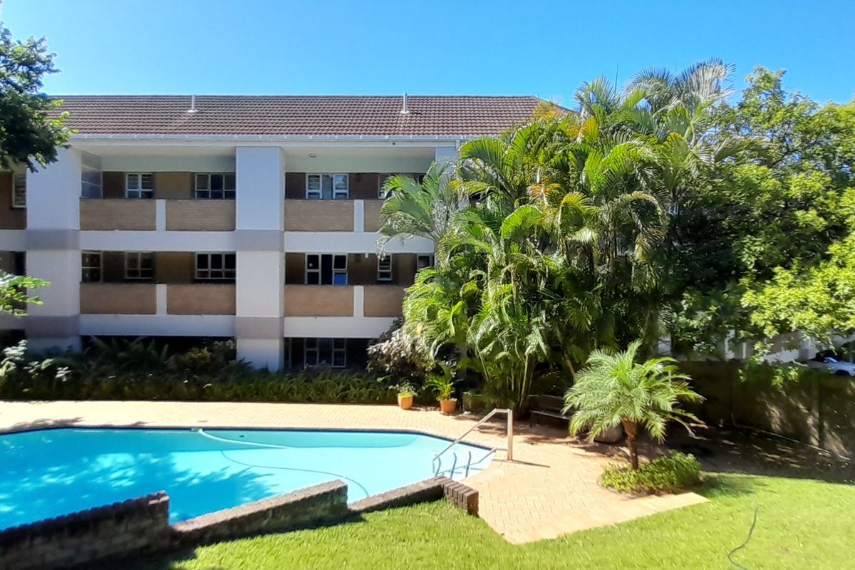 Live steps from Umhlanga Village and the beach with relaxed veranda and partial sea views, communal pool and manicured braai garden; modern Caesarstone kitchen, two beds, two baths, garage.