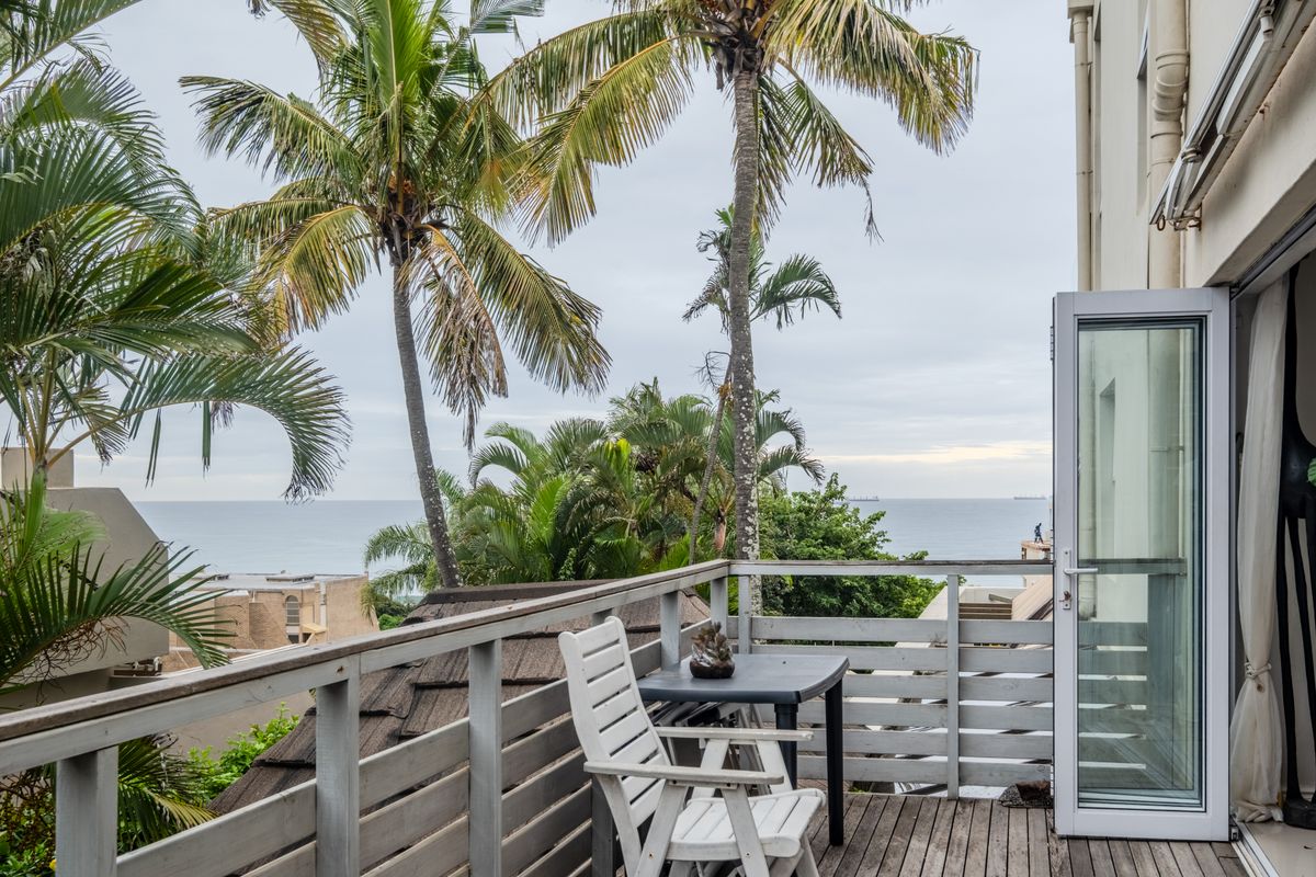 Relaxed coastal living steps from Umhlanga beach in a secure estate, private balcony with sea views, two bedrooms, one bath, covered carport and extra parking bay.