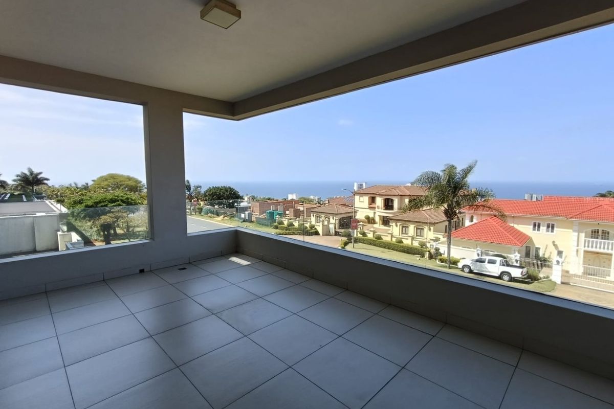 Sip morning coffee on a 180° ocean-view balcony in Umhlanga Ridge — two-bedroom, two-bath apartment with open-plan living, central AC, two parking bays, storeroom, pool and 24-hour security.