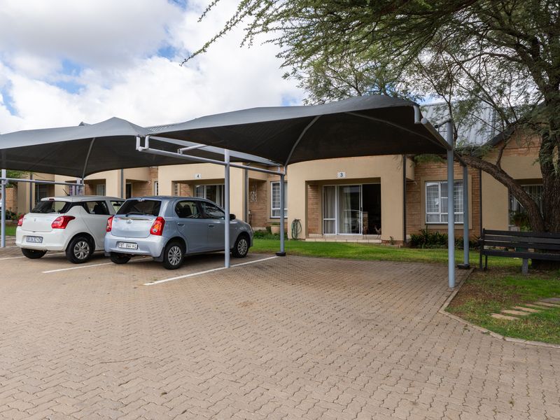 Serene, secure retirement living in Aloes Macadamia Village, Polokwane — enjoy a private patio overlooking tranquil gardens, modern open-plan kitchen and one-bedroom, one-bathroom ease.