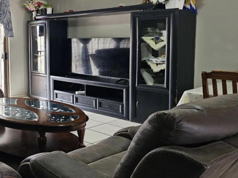 Easy family living near Olienpark Primary and Brits High School — open-plan TV/dining, air-conditioned comfort, prepaid utilities and a covered parking carport. Two bedrooms, one bathroom.