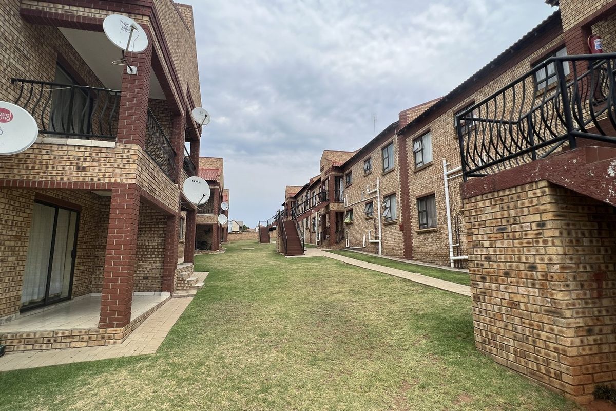 Ground-floor living in upmarket Doringkruin with a communal pool, open-plan kitchen/family TV room, fully tiled interior and prepaid electricity for convenience. Two bedrooms, one bathroom.