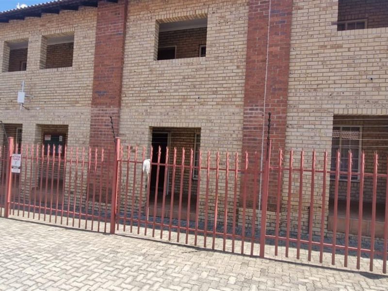 Relaxed suburban living in Adamayview, Klerksdorp, in a well-regarded suburb. Functional kitchen with built-in hob and oven, paved communal courtyard, one bedroom, one bathroom and dedicated garage.