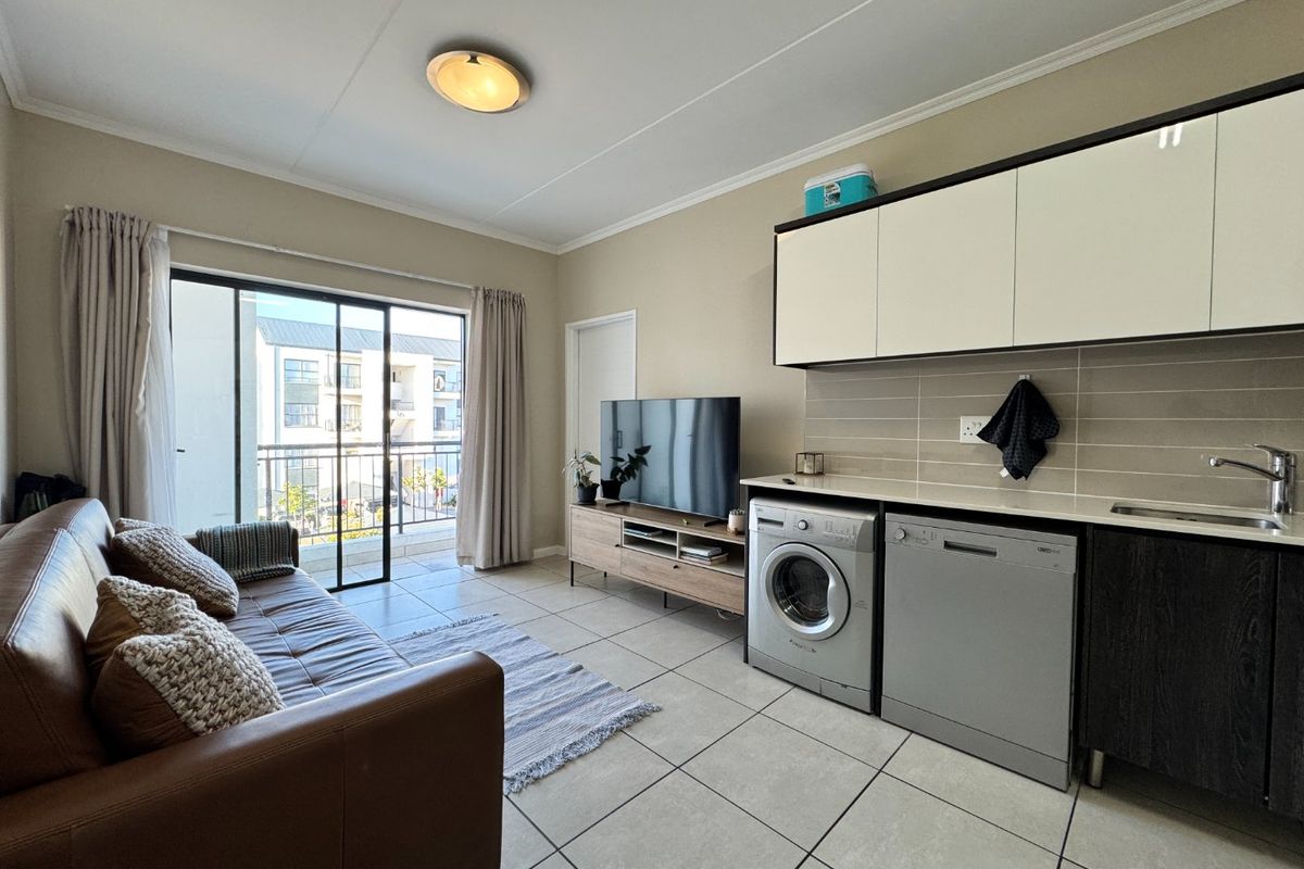 Coastal convenience near Blouberg beaches and shopping, in The Sandown complex — open-plan living with a private balcony, quality kitchen finishes, 24-hour security; one bedroom, one bathroom.