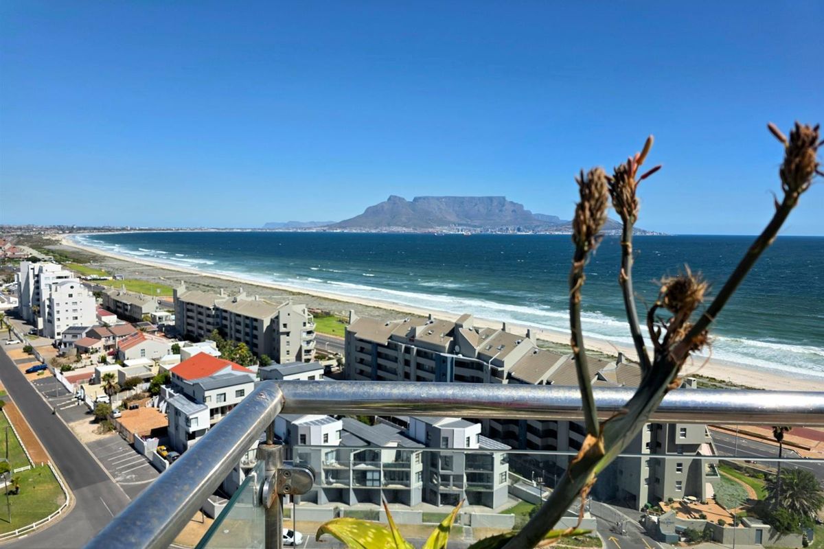 Beachfront living with iconic Table Mountain and ocean panoramas, fully furnished with a modern open-plan kitchen and enclosed oversized balcony — two bedrooms, two baths, secure parking.