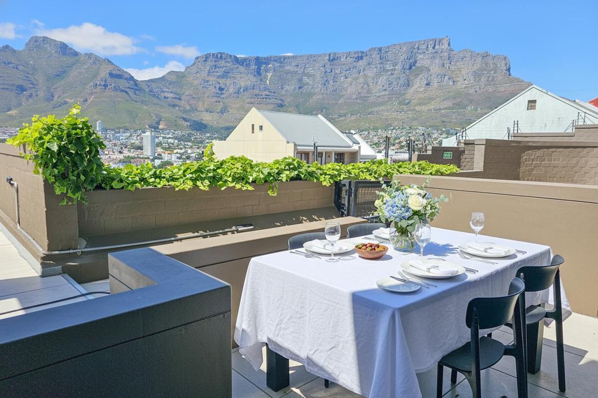 Enjoy vibrant Bo Kaap living steps from Long, Loop and Bree streets — Airbnb-ready apartment with terrace and mountain views, open-plan living, one bedroom, one bathroom and secure parking.
