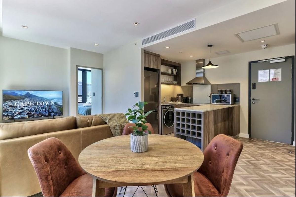 Experience vibrant CBD living steps from the V&A Waterfront and restaurants, a 15th-floor corner apartment with city and Table Mountain views, turnkey Airbnb-ready one-bedroom, one-bath with secure parking.