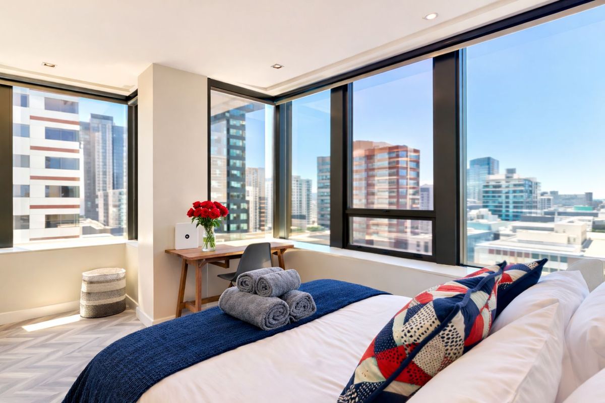Wake up to panoramic views over the city in this tastefully fully furnished 15th floor corner apartment. Located in the heart of the CBD not affected by load-shedding/power cuts at all.
