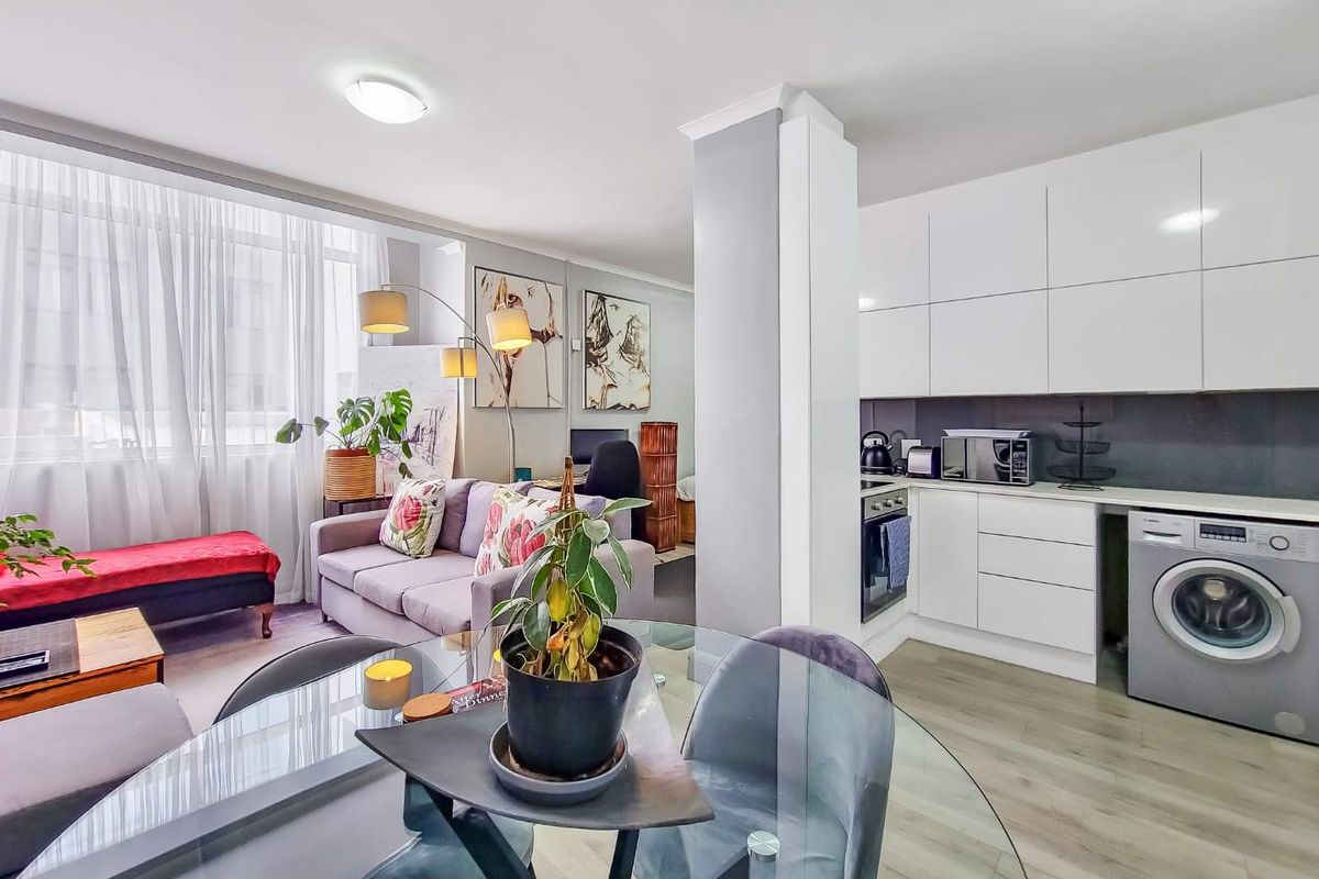 Enjoy vibrant city living in sought-after The Square, Cape Town — renovated kitchen for easy entertaining; studio offers a separate sleeping area, one bathroom and undercover parking.