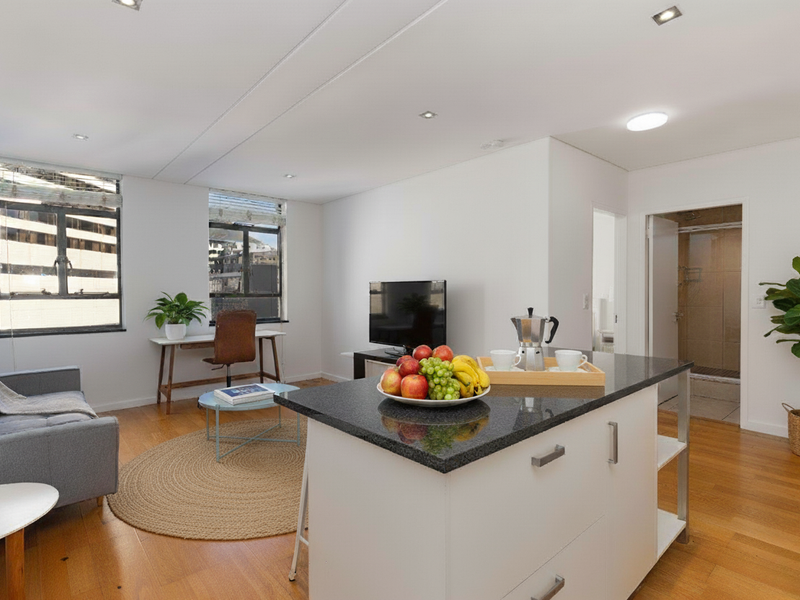 Enjoy vibrant CBD living on St George's Mall with Lion's Head views, 10th-floor modern apartment featuring a sleek kitchen, aircon, one bedroom, bathroom and undercover parking.