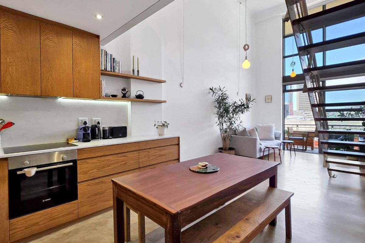 Experience De Waterkant living with Table Mountain views from your private balcony — modern Airbnb-ready loft with communal pool, one covered parking, one bedroom and one bathroom.
